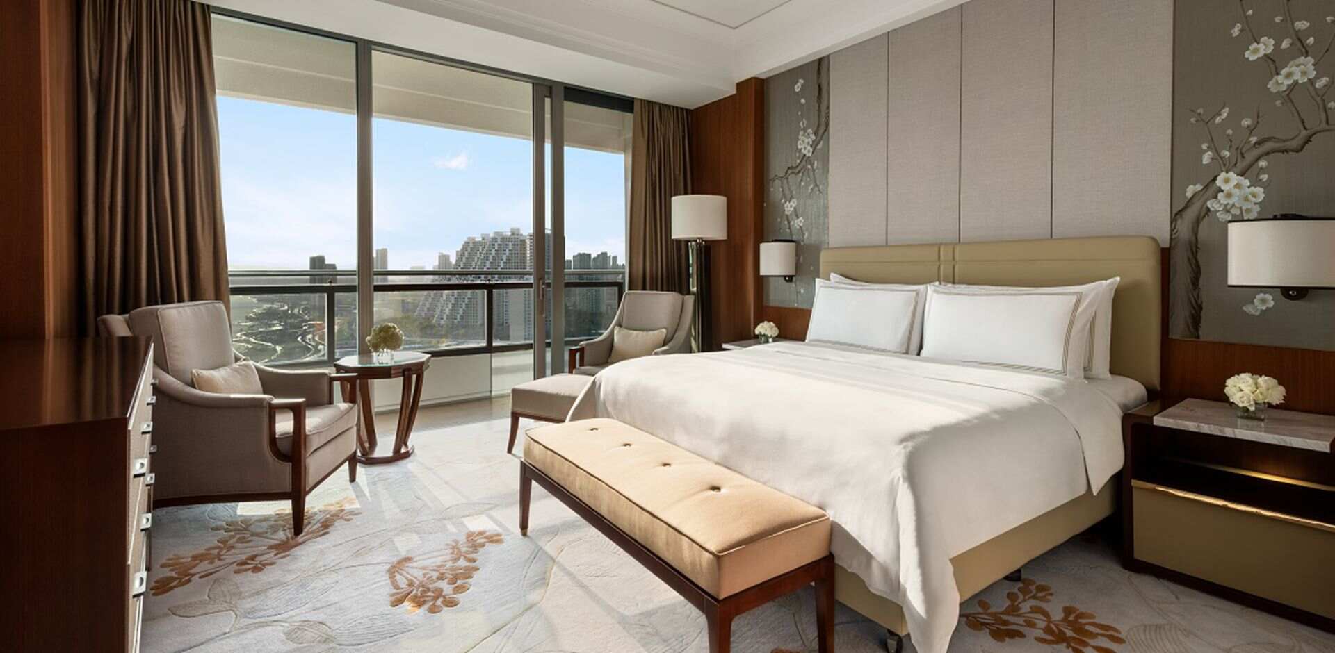 秦皇岛香格里拉共设有323间客房和套房,典雅实用的装潢,配搭温暖富有品味的色调,让人倍感惬意。每间客房面积为45-135平方米,宾客置身于此,可透过落地窗饱览风景如画的渤海景色。大部分客房设有宽敞的阳台,坐在供放松之用的座椅上,欣赏迷人的海景。豪华阁海景客房位于酒店16-22层,为追求高标准入住环境的宾客提供个性化服务。